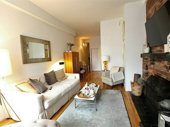Absolutely enormous and sun-flooded with working fireplace, amazingly high ceilings, separate kitchen with dishwasher, lovely tiled bath, hardwood floors and tons of closet/storage space. The building is a prewar elevator midrise that used to be a Piano Factory and was converted into very large and unique apartments. There is laundry, video intercom security and a live-in super. Pet friendly