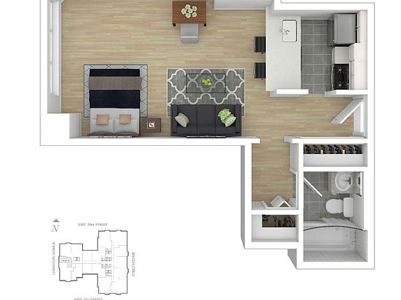 Bright studio with western views and lots of natural light. Features an open kitchen with breakfast bar and ample closet space.