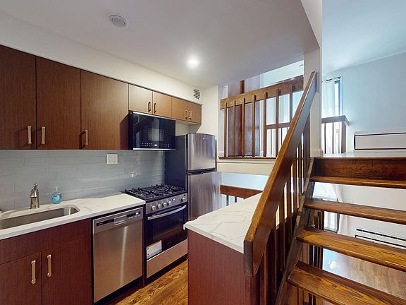Beautiful 1 bedroom triplex apartment with a beautiful kitchen, s-steel appliances, d/w, m/w, large living room high ceilings, hardwood floors.