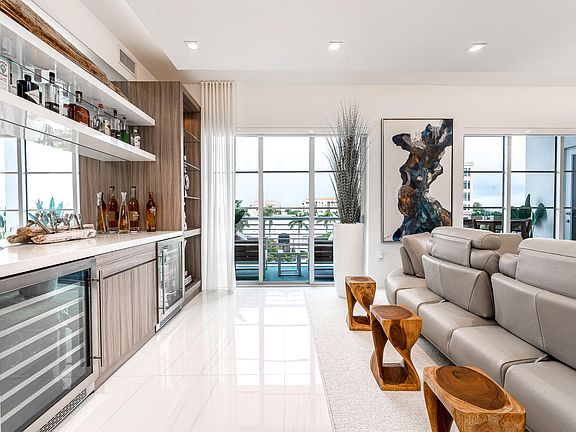 Welcome to the epitome of luxury living in the heart of downtown Boca Raton! This exquisite 3-bedroom 3-bath apartment offers a spacious open concept floor plan with 10-foot ceilings. Designed by Interiors by Steven G this unit is a gem. Features abound including chef's kitchen with quartz countertops, Italian cabinetry, and Bosch appliances. Living room has a custom built-in bar with wine refrigerator and beverage refrigerator. Master suite is complete with large his and hers walk in closets. A home office area is expertly integrated into the apartment's layout and design featuring dual workspaces, storage cabinets, and shelving units. Porcelain tile floors span throughout the apartment. Two parking spaces come complete with a dedicated electric vehicle charger. Two air-conditioned storage units provide additional space for your belongings. Tower 155 located in the heart of downtown Boca Raton offers the ultimate in luxury urban lifestyle. You'll be just steps away from the fabulous shops and restaurants that Boca Raton is renowned for, and a short distance from The Boca Raton Resort and the beach. The building itself is a luxury high-rise, boasting a resort style pool, 24-hour concierge and valet service and a rooftop hot tub and bar, offering breathtaking panoramic views of Boca Raton and the Atlantic Ocean. Store your favorite spirits with your own rooftop liquor locker. A state-of-the-art fitness center is complete with two Peloton bikes. After a workout, unwind in the coffee room, sauna, steam room, or treat yourself to a massage in the dedicated massage room. With luxury, comfort and convenience, don't miss out on this incredible opportunity to call this remarkable apartment your home.