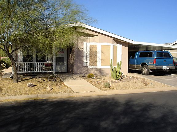 Well maintained home with lots of storage for full time living, pantry, workshop, Arizona room with easy care floor. The front and back yards are landscaped with drip system and full grown trees for shade in the summer. The back covered patio is perfect for your morning coffee while listening to the birds. Windows are covered with solar screens. All electric house with new range and refrigerator in 2010 and dishwasher in 2011. The kitchen has been remodeled and features solid oak cabinets with pull-outs and some glass doors to display your best dishes along with an island. New electric water heater just installed. Laundry room has new washer/dryer with storage. The back yard is walled in with a gate which is perfect for your pets.