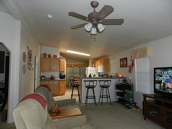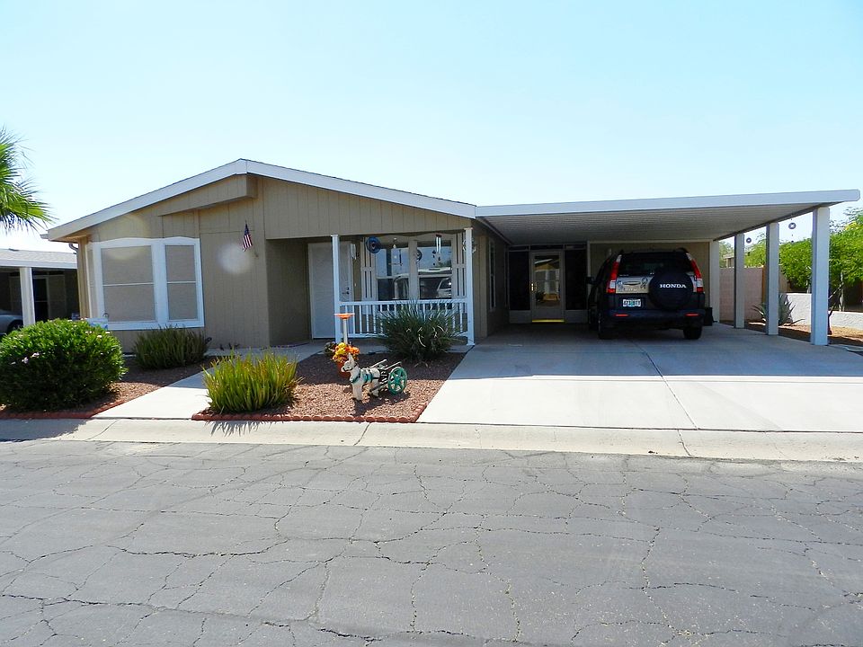 2005 Cavco, 1456sq ft, 2 bedroom, 2 bath, den, laundry room, shed, Arizona room with screened vinyl windows, enclosed back yard (ideal for pets) FULLY furnished, includes kitchenware, linens, and 3 tv's just bring your toothbrush! large master with walk - in shower with seats Glass top electric range, refridgerator and microwave Kitchen has eating bar Double covered carport Thermopane windows Security screen door Open floor plan with vaulted ceilings Smoke and pet FREE Irrigation system with timer New Heat Pump/AC_2015 Lot rent is $405/month