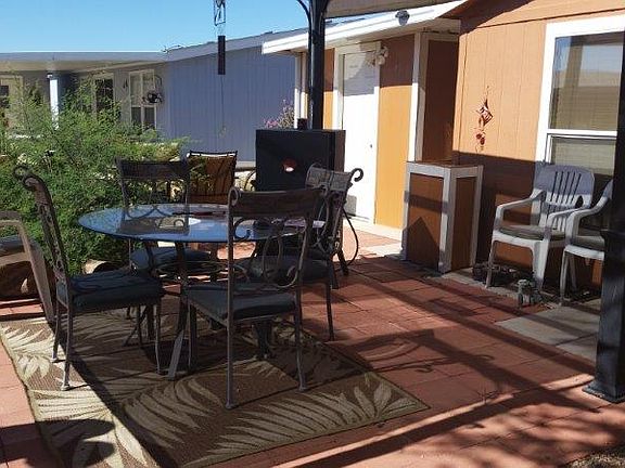 Excellent Fully furnished 2 bedroom 2 bath Doublewide in this exclusive adult community in Casa Grande , Arizona. This is an active adult park with a clubhouse, heated pool, shuffleboard, pool tables, and card room. Restaurants and shopping is within 2 miles . Master bedroom has a separate sitting area. Lovely eat in kitchen. Mostly newer furniture! Refrigerator, stove, dishwasher, microwave, washer and dryer Carport awning Central air Nice storage shed Flooring includes some laminate, some tile, and carpet in the guest bedroom Hardboard siding, shingle roof, and double pane windows To see this lovely home call Cindy @ 520-560-6065 Financing available with good credit and low rates!