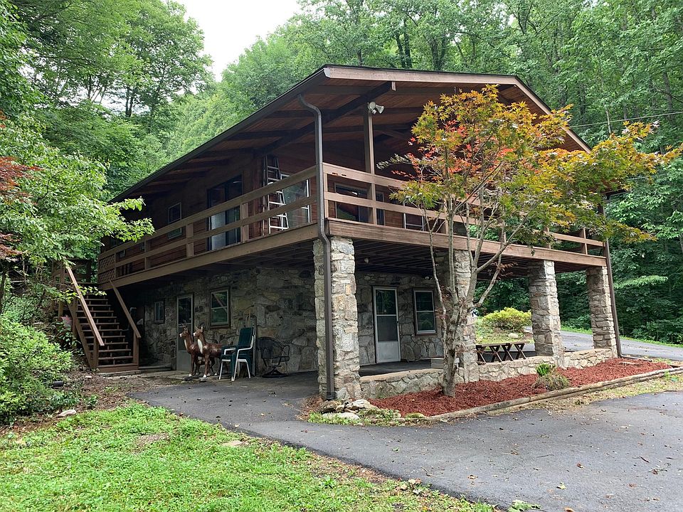 This 3BR / 2BA superbly updated home offers vintage stone, knotty pine walls and vaulted ceilings just to name a few of the features. A huge wrap around covered deck with scenic views and a bubbling stream with a waterfall is the perfect place for entertaining guests or just relaxing on a warm summer evening. This property is located between Waynesville and Sylva in one of the areas elite gated communities. Privacy and seclusion for the person that wants it all! Tenants are responsible for all utilities and lawn maintenance. Pets ok with owners approval.