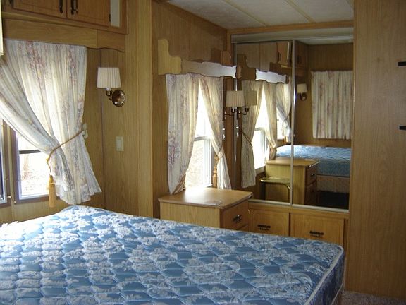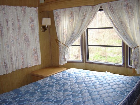 Looking for a place to enjoy the weekends or vacation where you can relax. Take a look at this Canterbury Park Model trailer furnished and ready to move in. Located on a large wooded lot with fire pit for evenings around the campfire. 12X16 shed for all your outdoor items - even room for a golf cart to ride around thru the park and visit friends. There is a stocked pond for fishing with a swimming area in front of the community club house. This is located just minutes from the ski lakes of Steuben county - there is a yacht club nearby to dock your boat if you wish. The park has a home owner's association who maintains the park year round with a full time property manager on site. Taxes show 0 for 14/15 - totally disabled vet exemption.