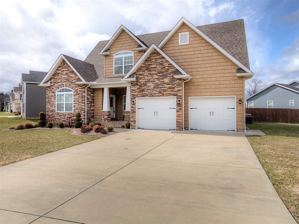 Gorgeous like "new", 4 bedroom, one owner home with all the "bells & whistles"! Main level master suite featuring over $5K built-ins walk in closet (his & her closets) open floor plan, soaring ceiling, stacked stone fireplace w/gas insert, hand scraped wide plank hardwoods; Gorgeous kitchen, stainless appliances, solid surface counters, open to family room, copper farmhouse sink, spacious bonus room/4th bedroom, covered screened rear patio, beautifully landscaped & excellent curb appeal!