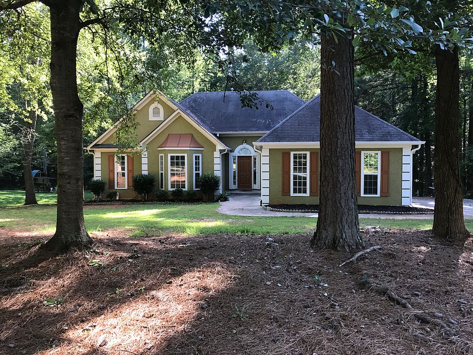 Great curb appeal and private outdoor space. Large great room with laminate flooring and cozy fireplace. Kitchen with breakfast area, formal dining room, master with new carpet, double vanity in master bath. Secondary bedroom and large bonus room with two car garage. Large deck in the back yard. New beautiful roofing installed within the last few weeks.