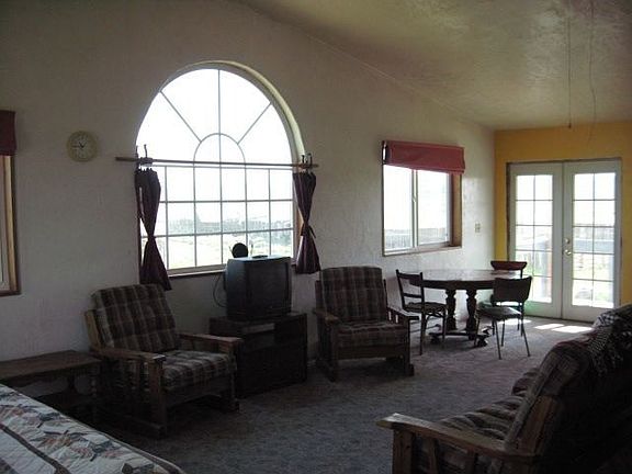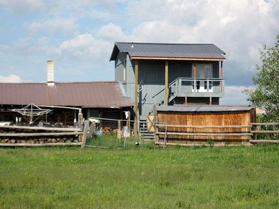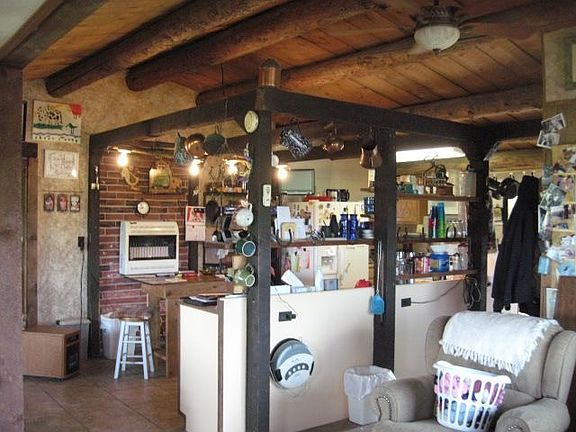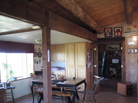 :Great horse property! Original house is a log cabin with an addition and has been remodeled. Log beams, wood and tile floors. County kitchen with dining area and sitting area. Large living room with log beams and wood floors. The patio is off the living room. Upstairs could be studio apartment or a large bedroom with huge windows. Rustic barn, wonderful shop, heated 1200 sq ft garage.