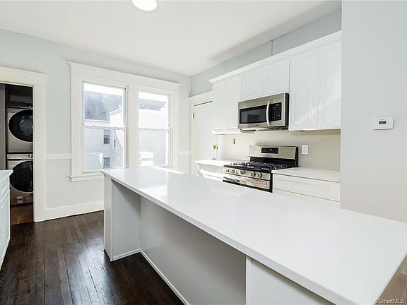 This East Rock apartment has been remodeled and updated to include everything one could want: laundry, central air, large shower, new stainless steel appliances, and beautiful quartz counters! The open floor plan allows for tons of natural light to illuminate the gleaming hardwood floors and oversized kitchen island. Each of the 3 bedrooms has a nice sized closet and new hardware. The bathroom has been renovated to boast custom marble tile and Moen fixtures- and a new window to allow for even more natural light! This bright, spacious unit epitomizes East Rock living... a must see!