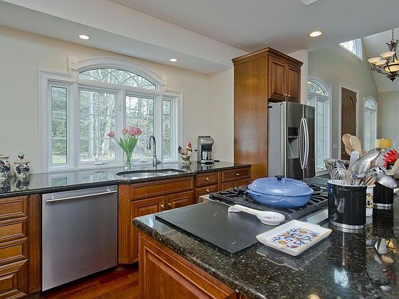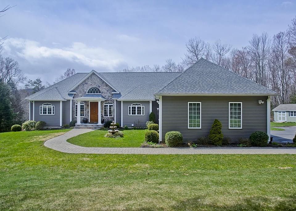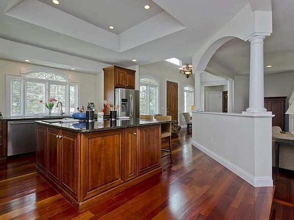 Stunning 2x6 construction executive ranch nestled on 1.93 acres of serene privacy offers open floor plan, gleaming hardwoord floors that flow beautifully into gourmet cherry kitchen with granite counter and stainless steel appliances sure to please even the finest of chefs. Kitchen open to gorgeous sunken livingroom and dining room with fireplace and soaring ceiling overlooks covered patio which can be accessed from both livingroom and dining room, accent wall with columns and arched opening for character that is second to none. Atrium doors open to magnificent master suite offering master bath and large walkin closet fireplace and access to private deck. 2 additional bedrooms and additional full bath as well as laundry on main floor. Perfect space for the in-law or teen suite in this huge unfinished walkout basement that is already plumbed for an additional bathroom.
