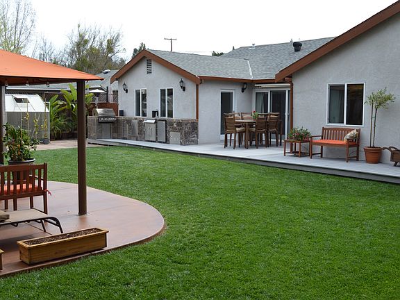 Single level recently updated w/beautiful cherrywood eng. floors; new carpet; new kitchen appliances; 2 firepls; elec canopy over patio;hot tub w/safety cover;full outdoor kitchen; Mstr Bdrm opens to backyd with large lawn area for family fun & entertain. 2 car att garage/1 detached garage.