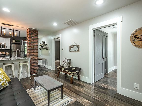 WOW! WOW! WOW! This 1924 home is LOADED with style and completely move in ready. The seller has done an amazing job bringing life back into this property while staying true to its character. A gorgeous restored brick column sits center in this open concept living room and kitchen space that is perfect for entertaining. New waterproof flooring throughout home! The accent wall in the living room was created by hand from old reclaimed wood. You will appreciate the fantastic use of space in this home! The kitchen is beautiful with ALL NEW APPLIANCES, granite counters and a little touch of the old part of the house. The shelving on the wall was custom made with wood from the home before the renovation and that will remain. Address sign and Louisville plaque on front door were custom made from