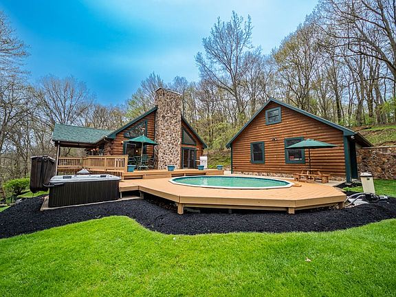 Welcome to 155 Glade Run Road! Yes, this is a TRUE custom log cabin located in the heart of the very desirable Adams Twp! This home sweet home sits on just under 3 lush acres and was custom built by the one and only owner...and it has been lovingly maintained ever since. This 4 bedroom beauty is made out of the most lovely New Hampshire white pine you've ever seen! It has a two story great room with stacked stone fireplace and open concept kitchen with center island. Neutral decor throughout, and true to classic log cabin style. Two bedrooms and full bath on the main level. Second floor features an open loft over looking the great room and spacious master w/ en suite & walk in closet. Finished walk out game room w/ 4th bedroom. Oversized 2 car detached garage w/ usable 2nd level & plenty of space for your work shop & hobbies! So much storage! Pool & hot tub surrounded by nature, functional & adorable greenhouse. A special home nestled among glorious mature trees. Your dream awaits.