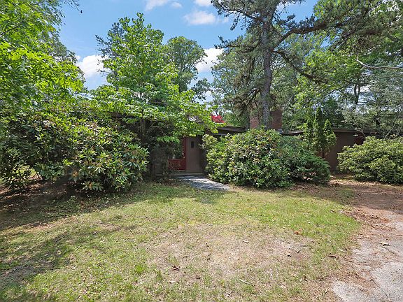 Mid century ranch on 3+ acres with frontage on Spectacle Pond. This property offers exceptional privacy set back from the road, yet is conveniently located close to all the local amenities. Beautiful grounds with endless potential for gardening. There are mature plantings such as perennial bushes, Japanese Maples and Blueberry Bushes. The home features large living spaces and special moments such as an eat-in kitchen with red tile floors and new appliances. The living room greets you as you walk with refinished hardwood floors, and the family room is expansive with beamed ceilings, a fieldstone fireplace and flagstone floors. Sliding doors open onto a lovely flagstone patio where you will enjoy summer cool summer breezes off the pond. Attached to the house is a three bay garage with a separate driveway and space for up to five cars inside! A winding path leads down to the water.