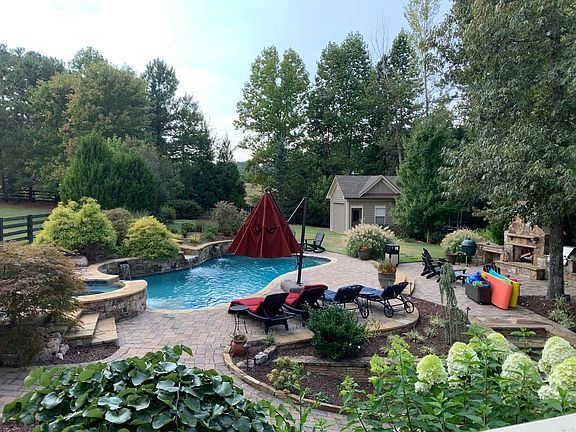 Exquisite, custom built home on spacious level lot w/everything you could ask for! Interior boasts gourmet Kitchen w/granite, tile & stainless steel appliances, Keeping Room & Great Room w/beautiful vaulted ceilings, built-in bookcases & fireplace, over-sized Master Suite on main level w/spa like bath & spacious secondary bedrooms. Bright Terrace Level has Theater Room, fireside Den, Kitchenette & Full Bath. The outside Oasis is perfect for entertaining! Heated/chilled pebbletec gunite pool w/2 hot tubs, stone fireplace & built-in grill.