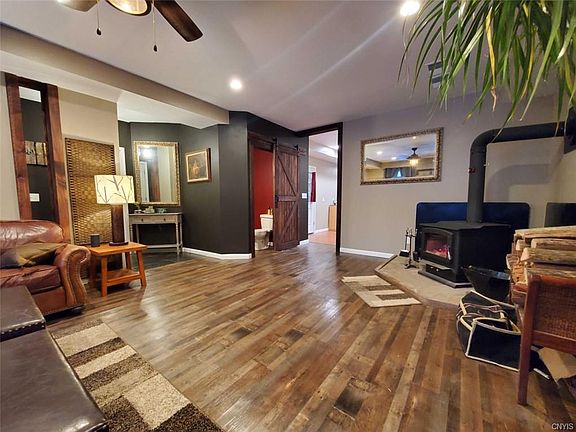 This amazing property has something for everyone. For the hunters and outdoorsman it sits on 12 acres for your hunting enjoyment,along with the Salmon River within close distance. The state snowmobiling trail is located right across the street for endless access to the state trails .Walk up onto a large covered porch with Omish ruff cut wood to sit and relax after a long day. Inside boasts a tile entry which leads to a large but cozy Livingroom with a wood stove to add extra warmth all with new LVT flooring. The spacious kitchen has a butcher block island with plenty of cabinets and counterspace for all your cooking needs.The master bedroom is located on the first floor with a master bath for your privacy and convenience. 2 large bedrooms upstairs with an inviting hall way and 2 full bath along with 2nd floor laundry. This home has been completely remodeled from the studs up, including flooring, carpeting, all new windows. All mechanicals are one year old & a new oversized garage with brand new poured concrete pad with stairs to enter the kitchen for easy access for groceries. And not to mention a one year old metal roof to last a lifetime. This is a truly breathtaking property!