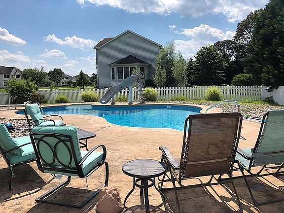 This beautiful 4 bedroom 2.5 bath home is located in the much sought after Country Lake Subdivision just across the street from Griffith's Lake. Entering through the two story foyer you will find the office/study and a formal living room. The eat in kitchen was designed with entertaining in mind. The extra large island fits four comfortably. The double wall oven, cook top and oversized refrigerator are a cooks dream. The kitchen is open to a bar/ game room which leads out to a deck on one side and a lagoon shaped salt water pool on the other. The kitchen also leads into a large family room with a fireplace. Rounding out the first floor are a dining room, sunroom, half bath and a laundry room. Walking up the oversized staircase leads to 4 bedrooms, a full bath and a computer/ reading nook. The large master suite has his and hers walk in closets, a large master bath with a soaking tub and 2 separate vanities. 3 other bedrooms, a full bath and attic storage round out the top floor. This home located on a large corner lot is completely fenced in with a separate gate leading to the pool. The house also has a full basement with a walk out that can be finished if more space is needed. With recent updates including new carpet, flooring, paint and a new HVAC unit upstairs, this gem won’t last long.
