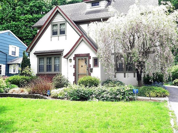 Stunning 1920 tudor literally backs to Highland Park. Nothing in view behind except lush woods! 2400+ square feet of charm and character across three finished floors plus a full finish-able basement. 4 bedrooms, 3 full baths. Many updates throughout. Cherry kitchen. Hardwoods. Stained and leaded glass. Built-ins. Wood burning fireplace. Cedar closet. Rear mudroom. Two car attached garage. Patio. Flowering trees. Appliances included. This is a turn key home on a special street!