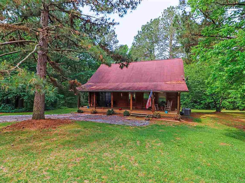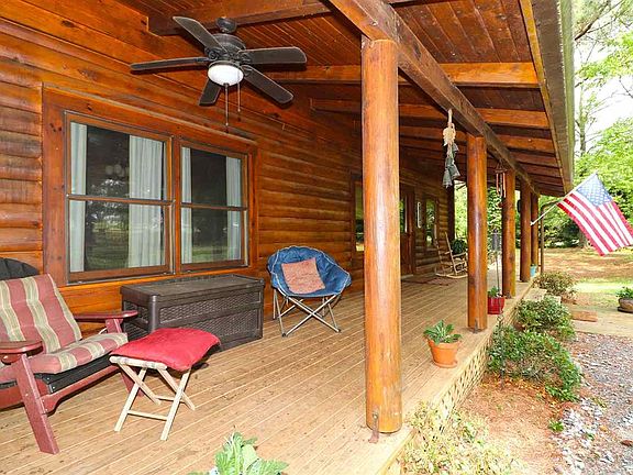 Cypress log cabin on 4 acres! This log cabin is nestled in wooded acreage and has a creek on the back of the property. The front porch is perfect for rocking chairs, and is sure to provide hours of relaxation. You will find solid hard wood floors, as you enter the home. Kitchen features butcher block countertops, solid hickory cabinets, and an island with barstools. Master features roll top desk that will stay with home; master bath complete with walk in closet, jetted tub, separate shower, and two pedestal sinks. Screened porch off of master bath. Upstairs you will find one guest bedroom and bath. Outdoor area in back features a deck and gazebo, (grill and swing stays). Main level AC unit was replaced last year. Basement includes a dehumidfier & garage door. You must see this cozy log home!