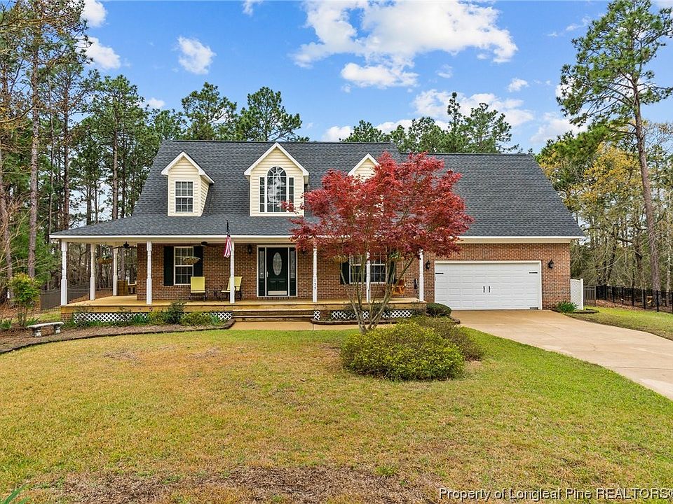 This gorgeous 3 bd 2.5 ba home has LAKE ACCESS & VIEWS of the Main Carolina Lake & Mirror Lake!!! It also has a beautiful wrap around porch with a swing to relax on that connects to the backyard deck. The main bedroom is on the 1st floor & has a WIC & a large ba with his & hers vanities, standing shower, & a linen closet. The open concept kitchen includes stainless steel appliances, granite countertops, an eat-in kitchen area and dining room area. The laundry room includes a pantry, cabinets for additional storage, access to the two car garage, & a private stairway to the bonus rm! Both guest bds are upstairs & have access to a full ba. There is also a spacious walk in attic that is great for easy access & storage. The fenced in backyard offers views of the lakes. Enjoy all the amenities of Carolina Lakes! 24 hour gated/guarded Golf & Lake Community, fishing, boating, a community pool, tennis courts, basketball courts, kayaking, canoeing and paddle boarding.