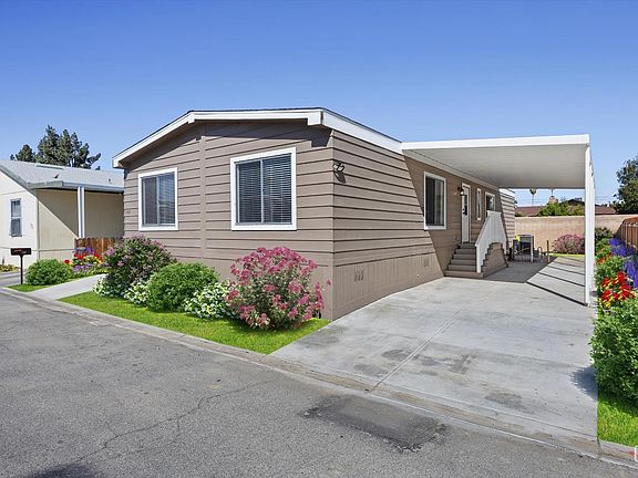 Experience luxury in this beautifully renovated 1,320 sq ft manufactured home in serene Riverdale Village. This move-in ready floor plan offers 2 spacious bedrooms and 2 modern bathrooms, with an emphasis on expansive living and dining areas designed for both entertaining and comfortable everyday living. The updated kitchen dazzles with stunning stainless steel appliances and meticulously maintained, almost-new tile countertops. In the primary bedroom, a generous walk-in closet adds a touch of practicality and style. Step outside onto a unique side deck with a side yarda perfect outdoor retreat to unwind and enjoy nature. This home has been thoughtfully updated with fresh paint, new carpet, and elegant wood-like flooring, this home exudes both charm and modern appeal. Premium community amenities include a sparkling pool, gym, game center, sports courts, and a clubhouse featuring a full kitchen and recreational room, alongside a playground and a dog station!