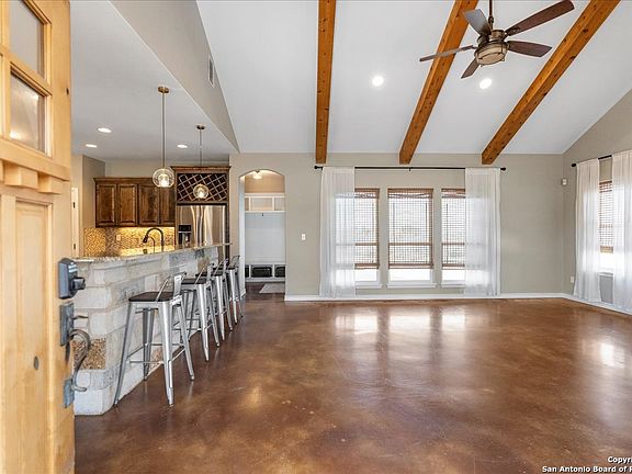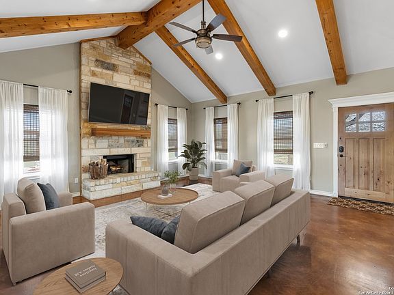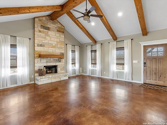 Stunning Custom Home with Pool, Cabana & Acreage - Move-In Ready! Discover the perfect blend of luxury, comfort, and peaceful country living in this custom rock and hardy plank home, built in 2015 and situated on 1.5 acres in Live Oak County, near Mathis, Texas. With exceptional curb appeal and meticulously maintained landscaping, this home offers a serene retreat with a lakeview backdrop. Enjoy spacious living with 3 large bedrooms, 2 full baths, and an open-concept layout featuring high ceilings and stunning decorative ceilings with wood beams and tray accents, adding an elegant touch to the home's charm. Step outside to your covered back patio, where you can unwind while overlooking your custom-built pool and cabana-perfect for entertaining or simply enjoying the beautiful South Texas days. Home Features: 2,028 SQFT | 3 Bedrooms | 2 Full Baths | 2-Car Garage Open Floor Plan - Seamless flow between the living, dining, and kitchen areas Custom Decorative Ceilings - Featuring wood beams and tray accents for added elegance Spacious Kitchen - Built-in microwave, walk-in pantry, and informal dining area Gorgeous Flooring - Beautifully stained concrete throughout Cozy Living Area - Floor-to-ceiling rock wood-burning fireplace Primary Suite Retreat - Includes: * Recently renovated spa-like shower * Double vanity with granite countertops * His & hers walk-in closets Two Additional Large Bedrooms - With easy access to a full bath Attached 2-Car Garage - With remote and keypad entry Exterior Highlights: 1.5 Acres of Scenic Land - Homestead exemption in place Covered Patio - Ideal for relaxing and entertaining Custom Pool (16x36, 6ft deep) - Built by "Moreno's Pools" with surrounding deck Matching Custom Cabana - Includes water & electricity for added convenience 20x20 Metal Shop - Perfect for storage, hobbies, or a workshop Low-Maintenance Xeriscape Landscaping - Featuring mature mesquite trees This exceptional property combines elegant craftsmanship, modern amenities, and tranquil country living-a rare opportunity in a sought-after location!