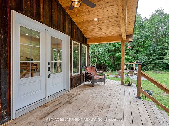 Welcome to 155 Hofer Road your private retreat on 18+ acres of rolling countryside. Renovated and thoughtfully designed, this family home offers the perfect balance of rustic charm and modern comfort. Step inside to a bright and inviting family room where soaring vaulted ceilings, exposed beams, and a wood-burning fireplace create a warm and welcoming atmosphere. Huge windows and a walkout to the deck fill this space with natural light, while pot lighting adds a touch of modern style. The open-concept kitchen and dining area is the true heart of the home, featuring quartz countertops, a farmers sink, a central island, and plenty of storage and prep space ideal for both everyday living and entertaining. On the main level, you'll find two generous bedrooms, including a stunning primary bedroom with a luxurious 5-piece ensuite. A second bedroom and a beautifully updated 4-piece bath ensure comfort and convenience for family or guests. The fully finished lower level provides even more living space with three additional bedrooms, a 3-piece bath, a laundry room, and a large rec room with its own walkout. Perfect for a growing family or hosting overnight guests. Outdoors, every season brings new adventures. In summer, relax in the pool or hot tub, explore the river running through the property, or entertain family and friends on over 1,200 sq. ft. of deck space. Evenings are made for gathering around the firepit under the stars. In winter, lace up your skates and enjoy your own private pond just steps away. Stay connected with Starlink, enjoy the convenience of school bus route access, and appreciate being just 10 minutes to town with easy 401 access. This isn't just a home its a place where every season brings new memories, new adventures, and a way of life you've been waiting for. The only thing missing is you. Its Time to Make YOUR Move!