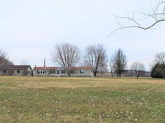 Amazing beautiful level property! Huge open floor plan-nicely kept home! Oversized 3 stall/2 door, large 40'x24' pole building/barn--built for horses! Flat 10 acres with long tree-lined driveway (partially paved). Master bedroom suite, huge kitchen, plus a large covered rear porch. Sloped ceilings, skylights, lots of windows for views everywhere! Short drive to Moraine and trails, fishing, walking, boating, etc. Easy drive to I79 too! Crawlspace with block foundation and cement floor. 1st floor laundry/mudroom with door to covered porch. Side door to garage from dining room/breakfast nook area. Newer (propane & electric heatpump) furnace/air, windows. Two wells: one for barn, one for house-great water supply! (dining room/breakfast nook/family room/ kitchen areas are an open floor plan! One big room with kitchen bar/island area) 2-3 car garage is insulated. Trees: white and purple lilac, witch hazel,poplar, maple, crabapple.