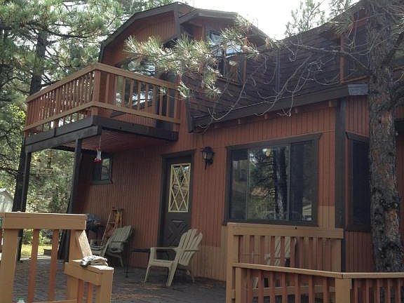 Gorgeous tree covered quiet cul du sac lot with charming cabin. Lots of wood features make this your perfect get away.Propane fireplace maintains warmth and coziness. There are 4 newly painted decks and a large storage shed.This home will come completely furnished and ready to move in to with the exception of some personal items.