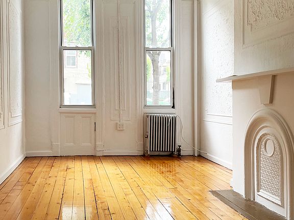 1 Bedroom duplex with private backyard! Unique as they come, this is a 1 bedroom Rent Stabilized unit steps away from the India st station.The duplex apartment has an open layout that features original wood floors, picture frame molding, a full tub, washer and dryer hookup , plenty of closet space, and a private backyard.All pets are welcome.Heat and Hot water is included.