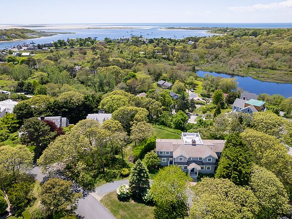 It's a pleasure to offer this exceptional home located on the iconic ''Loop'' that showcases some of the most picturesque views and impressive neighborhoods in town. This 4,000 sf, 5-bedroom residence is set on a .68-acre lot. Offering an outstanding location, deeded access to Mitchell River, and panoramic views from the roof top deck of the ocean, sound and beyond. You'll find gleaming hardwood floors, custom tile work, upgraded counter surfaces, stainless steel appliances, and exceptional woodwork throughout the home. Thoughtfully designed and professionally decorated with a coastal flair, this home encompasses 4 levels of living space. Perfectly proportioned, the first floor highlights a comfortable living room with gas fireplace, a dining area topped by a show stopping chandelier, a perfectly planned out gourmet kitchen, 2 en-suite bedrooms, plus a powder room. An impressive staircase brings you to the second level where you'll find a remarkable wet bar, 2 large primary bedrooms, both en-suite with private decks, and easy access to the ROOF TOP DECK. Stunning views in all directions give you a privileged vantage point of town most people never see; a bird's eye view of Stage Harbor, Mill Pond, the Mitchell River, Nantucket Sound, and the Atlantic Ocean, along with the surrounding neighborhoods that allow you to truly appreciate this special location. The lower level offers a family room, bedroom, full bathroom, fully equipped laundry room, and customized cubbie storage next to the garage entrance. Additional amenities include professional landscaping, a one car garage, and outside shower.