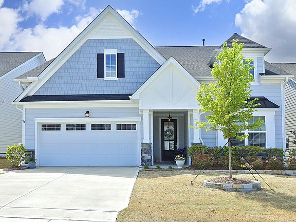 55+ Community, Ranch Plan(Dover II) w/screen porch, stone patio overlooking trees & greenway. 3 bed, 2.5 bath home w/flex space. Beautiful Kitchen w/grey cabinets, large Island, Tile backsplash & accents, EVP flooring, Walk in Pantry all open to FR w/stone accented fireplace. Primary BR w/Tray Ceiling, Primary bath w/large Shower, 2 separate Vanities and huge closet. Enjoy the many amenities in Auburn Village – yard maintenance, club House, pickleball Ct, pool, fitness center & event space.