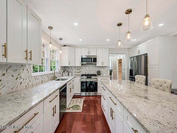 Welcome to this Luxurious Newly Renovated Five-Bedroom Home in Prestigious Spring Lake Estates, located within walking distance of the Lake and White Sand Beach. This Stunning Home is situated on a peaceful Cul-De-Sac offering Privacy and Seclusion offering a Spacious Open Floor Plan perfect for entertaining Friends and Family. Premium Features Include: a Gourmet Kitchen with Granite Countertops, Large Island and Top Tier Stainless Steel Appliances. Luxury Crown Molding throughout, Brazilian Cherry Hardwood Flooring, a Gorgeous Spiral Staircase, the Warmth of Three Fireplaces, and MORE. Guest Bedroom and Laundry Room on the Main Floor. A Finished Bonus Room above the Garage and Fully Finished Basement provides Versatile Space for Recreation, Work, or Storage. This Beautiful home is conveniently located in the Heart of the Poconos, just 90 miles from NYC and Philadelphia. This location is coveted for its proximity within minutes to Delaware Water Gap, Downtown East Stroudsburg/Stroudsburg, Restaurants, Local Shopping, Pocono Medical Center, and East Stroudsburg University. Spring Lake Estates community offers many Outdoor Activities including: Fishing, Boating, Swimming, Picnicking, Outdoor Ice-Skating, and Large Fire Pit. You must see this Home and Great Community in person to truly appreciate. See Photos in Virtual Tour.