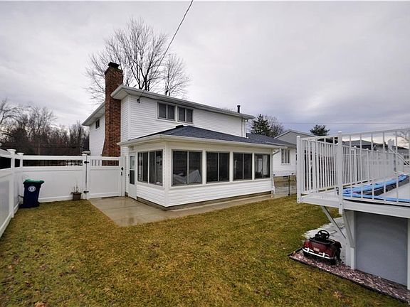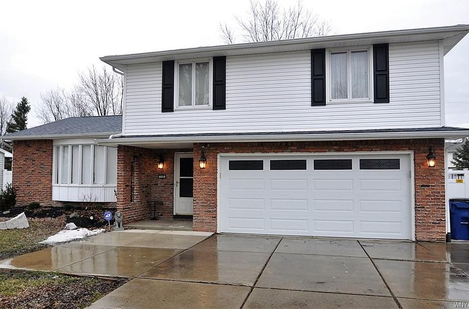 Check out this 2000 sq. ft. Split level Brick front Beauty, over-sized drive way with wrap around concrete walk to the full privacy fenced back yard with an above ground pool that could stay or go! Huge rear concrete deck. 3 over-sized bedrooms with major closet space, The updated bath includes a massive fully tiled shower with bench seating. Cozy Family room with wood burning fire place and enclosed sun room with high ceilings and paddle fans. Formal dining room and massive living room. Convenient First floor laundry and half bath around the corner, back up sump new hot water tank and newer roof. Williamsville Schools.