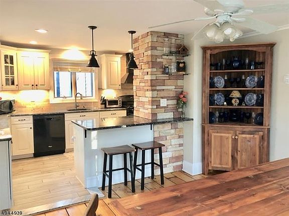 Fabulous River Front 5 BR, 2.1 Bath Colonial. First Floor Master BR Suite w full bath, walk-in closet and sliders to a deck with spectacular river views. Not in a flood zone - no flood ins required. This home has charm and character with a fresh urban feel. The 1st Fl has a newer kitchen w breakfast bar and opens to an informal DR that has the original wide plank pumpkin pine floors. There is a LR Fam Rm combo w a wood burning Fireplace, and the newer addition which features the Master BR Suite, BR #2 and Laundry. The 2nd Fl has 3 BR's, the Main Bath and the original pumpkin pine floors. The detached garage has a covered patio which overlooks the river. Wood floors recently finished, new pet proof carpet, energy efficient windows. Convenient to train station, major hwys and Boonton Main St. A+ location.