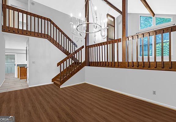 Live in a neighborhood that has it all! 4 Pools, 16 tennis courts, 2 Pickleball courts a 55 acre lake for canoeing and fishing, and trails to the Chattahoochee River. This townhome has vaulted and beamed ceilings, Luxury vinyl plank flooring, new lighting, new kitchen appliances, fresh paint and more. Family room with cozy fireplace and wet bar, sliding glass doors to the expansive deck overlooking a wooded backyard. Kitchen has tile floors, a walk-in pantry and granite counters. Full size laundry room. Formal dining room with 2 story ceiling. Upstairs you will find 3 bedrooms, the primary suite has a balcony window, updated bath and walk-in closet. The dedicated office has skylights and built in cabinetry too. The two car garage has a work bench and beverage refrigerator. Easy access to Roswell Rd and Ga Hwy 400. Great shopping at nearby North Point Mall and the Greenway. True resort living! Owner is a licensed Realtor. Copyright Georgia MLS. All rights reserved. Information is deemed reliable but not guaranteed.