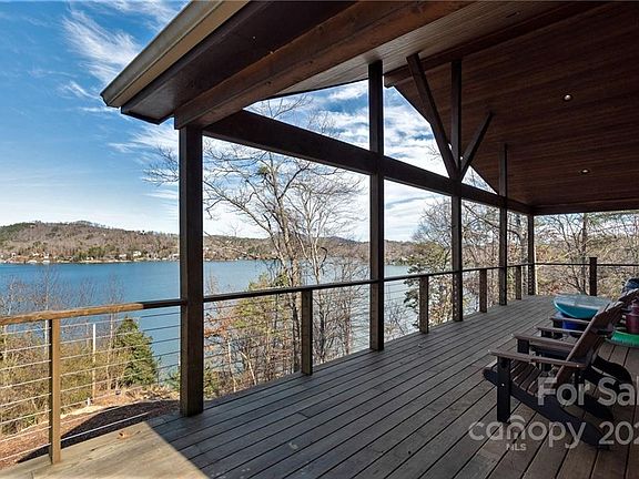 Outstanding views of both mountains and the open heart of the lake from this nearly new 2016 Lake Lure cottage. Included is an additional lot (153 Anglers Way) with a new-in-2021 boathouse. A cathedral ceiling Great Room offers a wood ceiling, hardwood floors and a wood stove. The windowed rear wall brings the views in. Primary bedroom faces those views and has an ensuite bathroom-double vanities, oversized tiled shower. Two more bedrooms share a hall bath with tile surround bathtub. Leather finish soapstone countertops set off a kitchen with stainless steel appliances, gas cooktop, stone farmhouse sink, and tile backsplash. A 10 foot covered rear deck runs the width of the house and gives you ample space for the entertaining you will surely do to show off your fabulous views. There's even a rear driveway for easy access to the lakefront lot and boathouse. Includes lot at 153 Anglers Way.