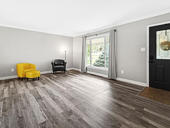 Updated RANCH is move in ready! Beautiful 3 bedroom, 1.5 bath home with extra deep garage, sun room and large fenced in yard. The kitchen with dovetail soft close cabinets and pullouts has been totally remodeled. New solid surface counters, stone backsplash, built in banquette w/ lighting, flooring, range,dishwasher and microwave NEW in June 2022. Large living room, 3 beds, updated baths, laundry room with washer and dryer, and sun room round out the main level. Extra deep garage with closet is perfect for a workshop or storage. Updates in 2022 include: New Vinyl plank flooring throughout, entire home painted, baths updated, range, dishwasher, microwave, all lighting, electric receptacles, ceiling fans, plumbing. Updates in 2021- Well tank, furnace, tankless water heater. Roof is 11 years old. Duneland schools.