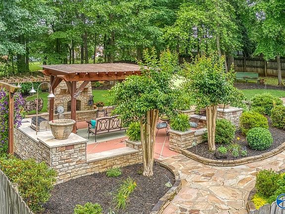 This property boasts 5 bedrooms (or 4 with a study), featuring stunning hardwood flooring throughout the lower level. The spacious family room is enhanced by a gas log fireplace. kitchen is equipped with a movable island, custom cabinets, and elegant granite countertops. The heated and sunroom offers a versatile living space, with a wood-burning stove adding to the ambiance. The master bathroom features a separate shower, jacuzzi tub w/tile surround, custom cabinets, and granite counters. Enjoy the outdoor living space w/ a private kitchen including a grill, sink, fridge, pergola, and stack stone fireplace. The colorful flower beds add to the appeal of a fenced backyard.