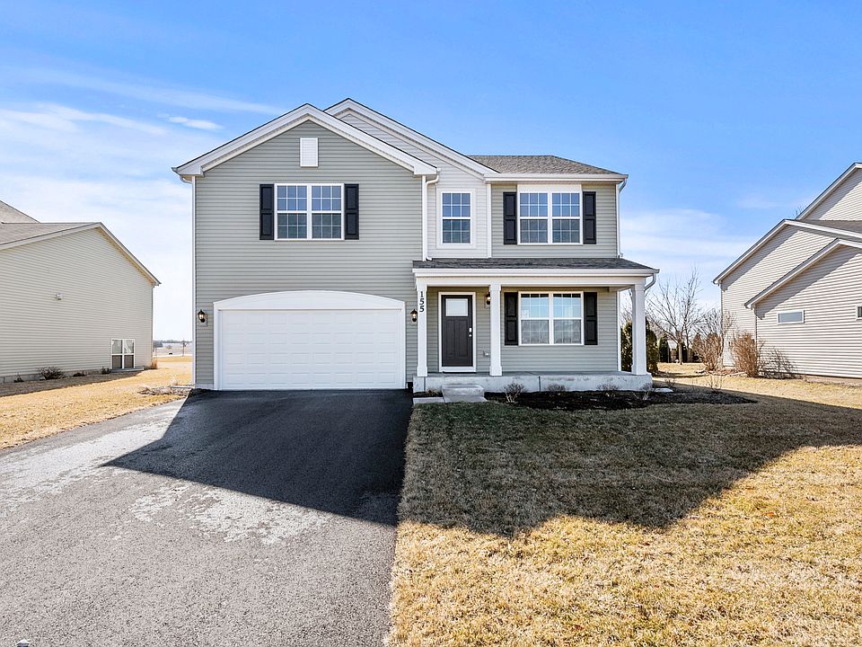 If space is what you are after look no further than this READY NOW #Dream Home! Located in popular #Ashcroft #Place #Oswego, the North Lake model is everything. Over 2800 Sqf, with 4 HUGE bedrooms, 2.5 bathrooms, loft, formal living room/dining room combo, and MASSIVE open concept kitchen and family room. Kitchen is light and bright, with trendsetting grey shaker cabinetry by #Aristokraft, and crisp quartz in snow white. Crown molding accents, #Surface LED lighting package, #Frigidaire stainless steel appliances and #Moen fixtures. No shortage of storage with large island/breakfast bar and walk in pantry. Open concept floor plan, flows effortlessly to the family room, perfect for entertaining. Deluxe 18X15 master suite with massive walk in closet, ceiling fan rough in, & plush carpet. Master bathroom combines design and functionality with dual sink, comfort height vanity, and oversized vanity mirror. Walk in shower is low maintenance with a timeless white surround. Gorgeous glass shower doors and transom window accent elevate this homes designer finishes. Low flow fixtures and #Moen faucets. In bathroom linen closet provides additional storage. Laundry room is conveniently located on the second floor. . #Kwikset Designer hardware in Satin Nickel. #Maxim light fixtures throughout! Just under a quarter acre, this prime lot features professional landscaping an established sod lawn, and adorable covered porch. Located in Ashcroft Place, enjoy all Oswego has to offer with downtown shopping, dining, and Oswego District 308 Schools! **INCLUDED Smart Home Features, High Efficiency Furnace & A/C, Power Vented Hot Water Heater, Underground Utilities, Architectural Shingles with 30 year Manufacturer Warranty, Programmable Thermostat, Low-E Glass Windows*** 1 Year Builder Warranty, 2 Year Mechanical Warranty, 10 Year Structural Warranty** No need to wait for that dream build, 155 Linden Drive is complete and ready to go NOW! See it, love it, buy it! Ask about our current incentives/financing and contact free showing options!