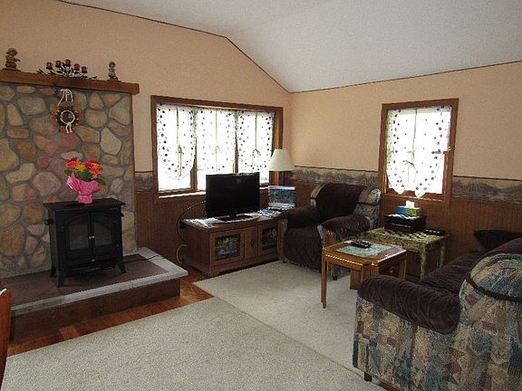 WH513 Year round home renovated inside and very nicely done.There is a bedroom up with glass slider out to a upper deck.Downstairs there is wood floors with a hearth and wood stove in the living room,updated kitchen, bathroom with laundry area,and another bedroom. There is a deck off the living room that leads out to a fire pit and nice yard.Also a partial basement, updated septic,town water, new propane forced air furnace and the property includes a 10 foot right of way to Lake Algonquin located across the road.Was $110,000 now reduced to $99,000. Happy New Year 2017