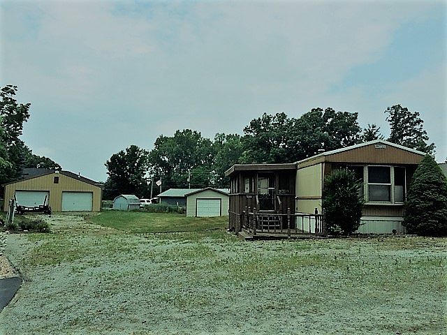 "COME JOIN THE FUN" on the Lake James Chain of Lakes. Enjoy a lake view with this property and all Lake James Estates Association amenities are just across the lane. These amenities include, dock space, boat ramp, picnic pavilion, beach, swimming area with swim raft, and volleyball court The mobile home with a 9' x 16' enclosed porch and a deck can be used as an affordable get away and the 30' x 32'' pole garage will store your boat and lake toys. The additional 14' x 16' storage building will hold your golf cart. Best of all, the level, 0.383 acre lot is ample size for a new lake home with the utilities already on the lot. This could be your place at the lake.