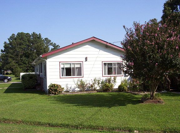 Water view in waterfront community. Propane gas heat. Large deck with nice water view. Family room off the kitchen. Large master bedroom which is handicapped accessible as is most of the home with ramp up to the back deck. Close to boat ramp to Perquimans River and Albemarle Sound. Detached garage has been converted to workshop with the laundry room off the workshop. Just show and make an offer!
