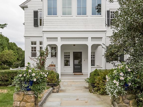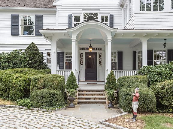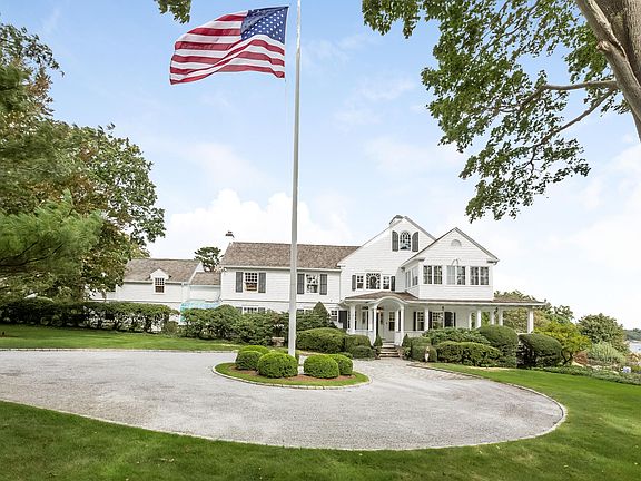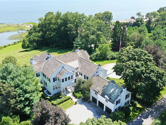 Enjoy sunrises overlooking LI Sound with sweeping views of Hay Island, the Fish Islands and Green's Ledge Lighthouse. House completely renovated in 1992 including an expansive addition and a recently remodelled kitchen. Enter through the foyer with soaring ceilings, fireplace & magnificent bifurcated staircase. Exquisite custom moldings throughout. Eight fireplaces. Formal living room & dining room, 2 story library with spiral staircase. Master bedroom en suite with fireplace and sleeping porch. Plus 5 bedrooms 4 baths. Two bedroom, 1 bath apartment over 3 car heated garage. Guest cottage with 2 bedrooms and 2 baths. Dock with power & water. Once in a lifetime opportunity. Close proximity to NYC. See map regarding building parcel.