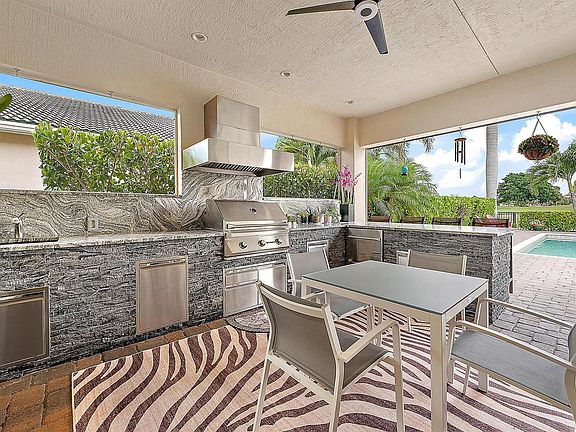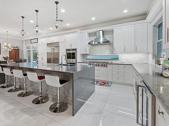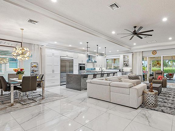 Elegant Golf Course Estate with Immediate Full Golf Membership! Welcome to your serene sanctuary in one of Jupiter Country Club's more peaceful sections, offering rare immediate full golf membership in one of the area's premier golf and sport communities. This home captures panoramic views of the 13th hole and is thoughtfully designed for both comfort and entertaining, with an open-concept layout anchored by a grand great room and expansive island where family and friends naturally gather. The first floor features the primary suite, a private office, and a separate in-law/guest en-suite bedroom, ensuring comfort for residents and visitors alike. With full impact windows & sliders and a whole house natural gas generator, this home is prepared for any season. Outdoors, phantom screens