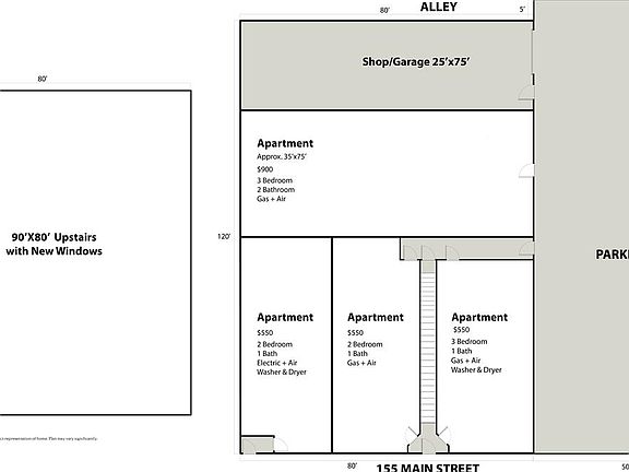 Classic old hotel has been changed & remodeled many times. In the origin of 1955 it was a grand hotel upstairs & offices downstairs; stories are told that in the basement there was a poker room for the more influential males of the community to play cards, etc. Room is in disrepair but the essence of poker is still there & the hotel upstairs is also still underneath much dust & time in all of its grandeur. Main floor has 4 apts that are very servable & currently rented, but the treasure is below and above.