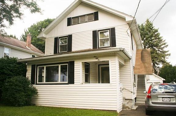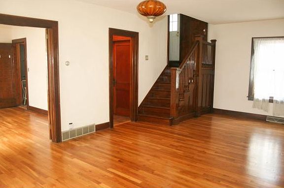 Nice clean, well kept west-side home, featuring 3 beds, 2 full baths, hardwood floors and natural wood trim. Newer stove and kitchen floor. Some lovely original wood cabinets, New bath surround in upstairs bath, 1st floor laundry, newer windows upstairs, covered porch, nice covered deck leads to fenced back yard, 1 car detached garage. Was a 2 family once, could easily be converted back into one!