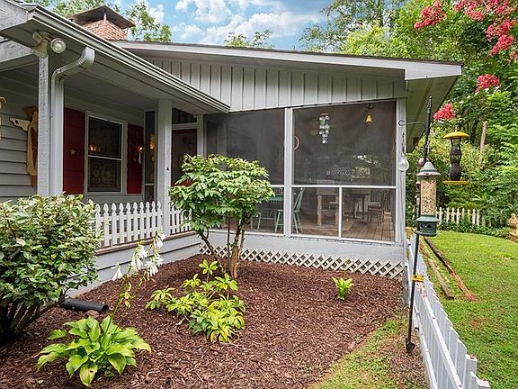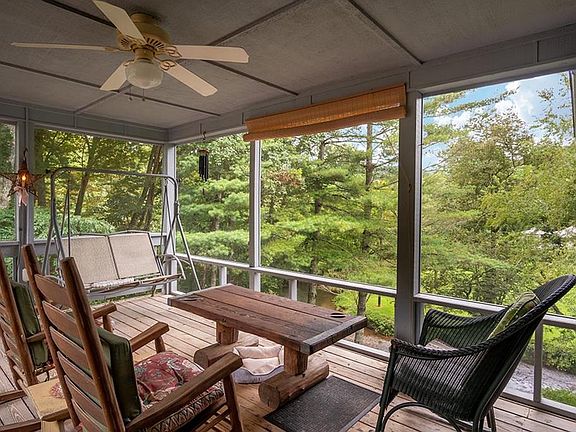 Spend your days trout fishing from your backyard! Overlooking Coweeta Creek in Otto, this beautiful 4 bedroom, 3 bath home offers gorgeous architectural details and rustic charm! With two screened in porches and a large backyard deck, this is the perfect home for entertaining or soaking in the beauty of your natural surroundings. Inside, there are multiple living areas, four large bedrooms, three updated bathrooms and a stunning claw foot tub! The country kitchen is well equipped with a gas range and newer appliances. The dining room provides enough space for large families or gatherings. Located just five minutes from shopping, this home offers a great location, rustic charm and plenty of space to enjoy all the mountains have to offer. Lower portion of property is in flood fringe area. The house is not. High speed internet available.