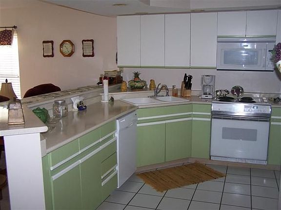 Clean and filled with designer touches.Brand new counters,fresh paint,new dishwasher,microwave,and washer & dryer.The owners have also changed the screened in patio to glass windows that still open and let the cool breezes in.Great decor and seperate dining make this a desired floorplan.