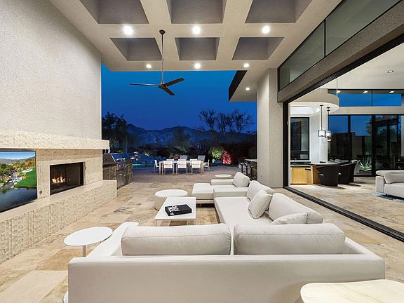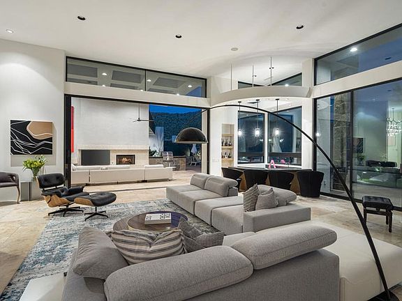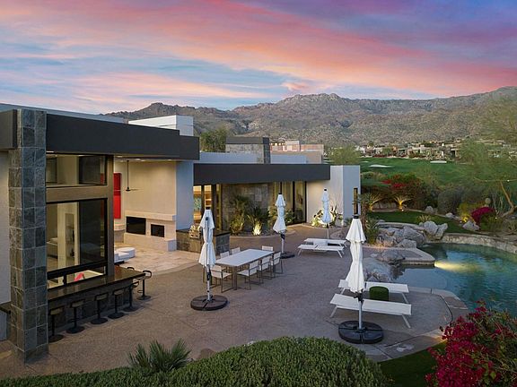 Looking for great outdoor living, open floor plan and mountain views? This contemporary home designed by architect Kristi Hanson offers all that and more. Located on the Mountain Course in BIGHORN, views of the 12th lake and green and 13th fairway can be enjoyed from the expansive pool and patio area. The large outdoor living area includes a fireplace and TV, and seamlessly opens to the great room. Master suite includes two complete separate bathrooms with showers, closets and vanities; one with a spa tub. Two additional guest suites on main level and one suite on upper level with built-in desk, morning bar and fireplace. The great room has walls of floor-to-ceiling glass, with wet bar, dining area and fireplace - all open to the kitchen. Outdoor patio off dining area for sunrise, and main patio and pool are perfectly situated for sunsets year round. Offered unfurnished, but some items may be negotiable.
